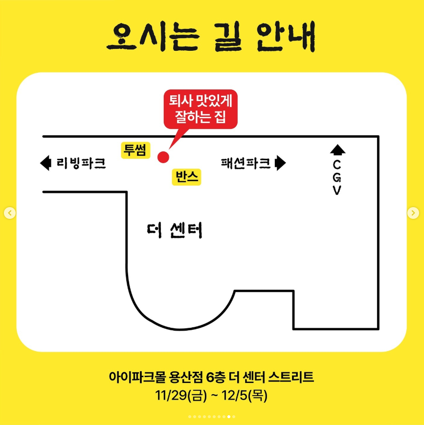 용산 아이파크몰에서 11월 29일부터 12월 5일까지 퇴사 맛있게 잘하는 집 팝업스토어가 열립니다. 퇴사 맛있게 잘하는 집은 퇴사 욕구가 차오르지만 회사를 열심히 다니는 직장인들을 위한 극사실주의 오피스툰을 그리는 김퇴사 작가의 팝업스토어인데요. 특별히 준비된 한정판 굿즈부터 다양한 이벤트가 준비되어 있다고 합니다. 올라온 굿즈 예시만 봐도 도파민이 차오르는데요! 직장인 분들께는 아주 속기쁨이 넘치는 굿즈일 것 같습니다. 이번주 시간되신다면 용산에서 퇴사 맛있게 잘하는 집 팝업스토어는 어떠신가요?