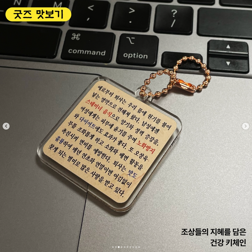 건강 키체인, 자석 스티커, 자석 오프너, 키체인, 엽서, 퇴사자 선물용 마우스패드 등
