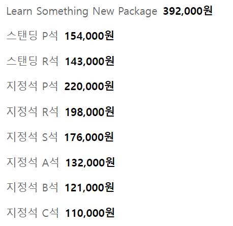 좌석 배치도 및 티켓 가격
